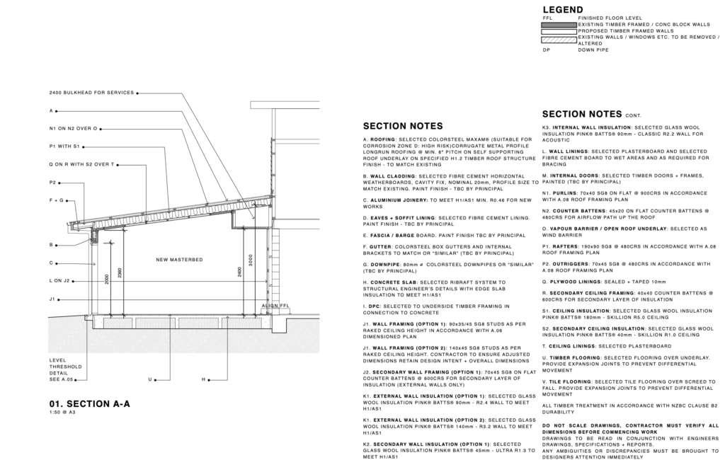 Our client required a ground floor master bedroom, ensuite and laundry addition to their existing two story home. After fully understanding the existing building and the clients needs, we developed a return design brief capturing each of the project components. Concept visualisations allowed the client and builder to collaborate on the form and construction methods which was then developed, detailed and documented for Thames Coromandel District Council building consent.